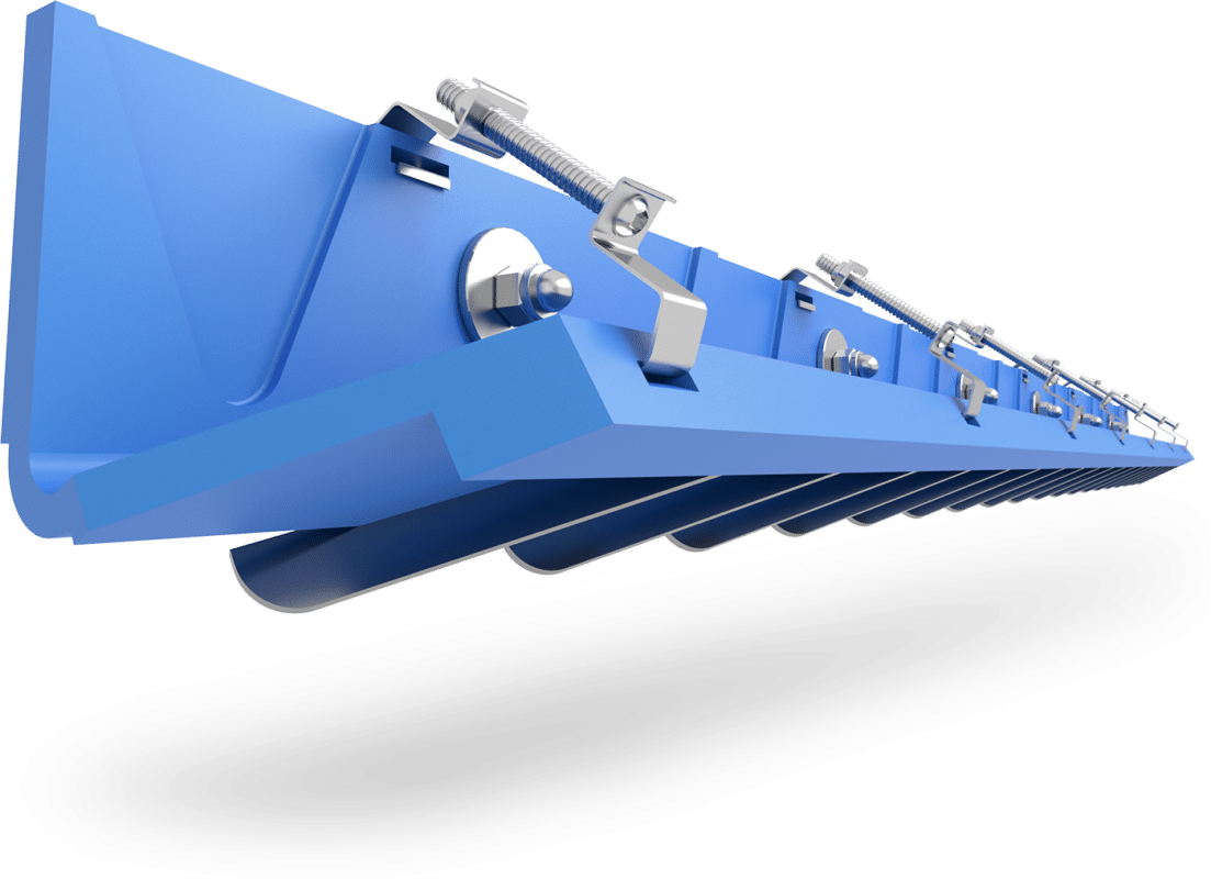 Ця безконтактна система ущільнення стрічки конвеєра, яка діє як високоефективне бокове ущільнення та монтується над конвеєрною стрічкою.